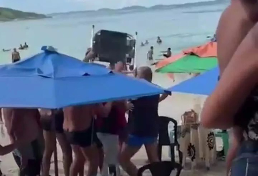 Durante a briga, um dos envolvidos utilizou uma cadeira para atingir outro homem na cabeça. A cena causou apreensão entre banhistas, que se afastaram rapidamente da área ao perceber a gravidade da situação.