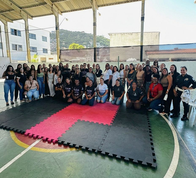 As atividades são conduzidas pelo instrutor Carlos Soares, responsável por orientar as alunas nas práticas de defesa pessoal e no preparo para lidar com possíveis ameaças no cotidiano.