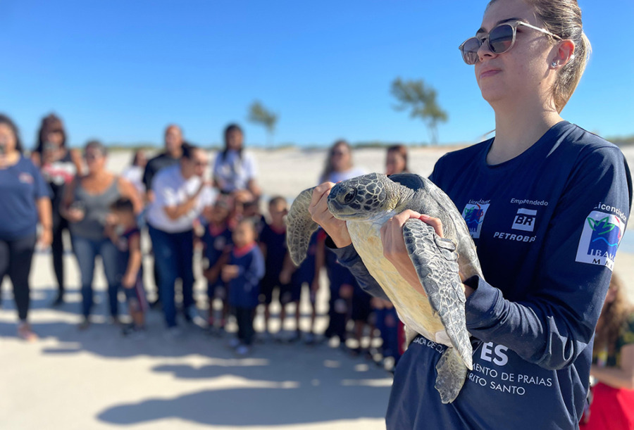 Após passar por tratamento e receber alta veterinária, a tartaruga pôde voltar ao seu habitat natural. Educar é conservar. Juntos, temos o poder de proteger o futuro da vida marinha.