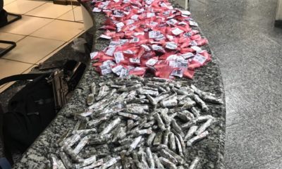 No imóvel, foram apreendidos 3 quilos de maconha, pasta base de cocaína, três bolas de haxixe, munições e roupas que fazem apologia às drogas. A Polícia...