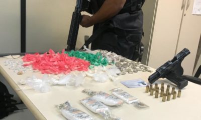 Outro suspeito atirou contra os agentes, mas conseguiu fugir. Na ação foram apreendidos um revólver calibre 38, seis tabletes de maconha, uma faca e um celular....