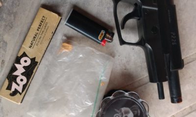 Uma mulher, identificada como M.E.A.S.O., e um homem, M.D.S.M., foram presos com drogas e uma réplica de pistola durante uma festa particular no bairro Extensão Serramar,...
