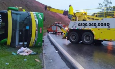 Um ônibus de turismo que seguia para Cabo Frio tombou na madrugada de domingo (10). O acidente aconteceu no KM 775 da rodovia BR-040, em Ewbank...