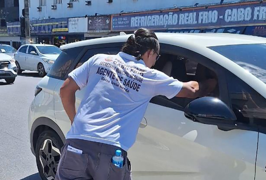 Os agentes percorreram locais de grande movimento, como as avenidas América Central e Teixeira e Souza, a Rodoviária Alexis Novellino, a Rua dos Biquínis, na Gamboa, além das orlas do Peró e de Tamoios. Ao longo do dia, foram distribuídos cerca de 2 mil panfletos e outros 1.500 materiais informativos, com instruções sobre eliminação de água parada e cuidados domésticos — ainda o principal foco de proliferação do mosquito transmissor de doenças como dengue, zika, chikungunya e febre amarela.