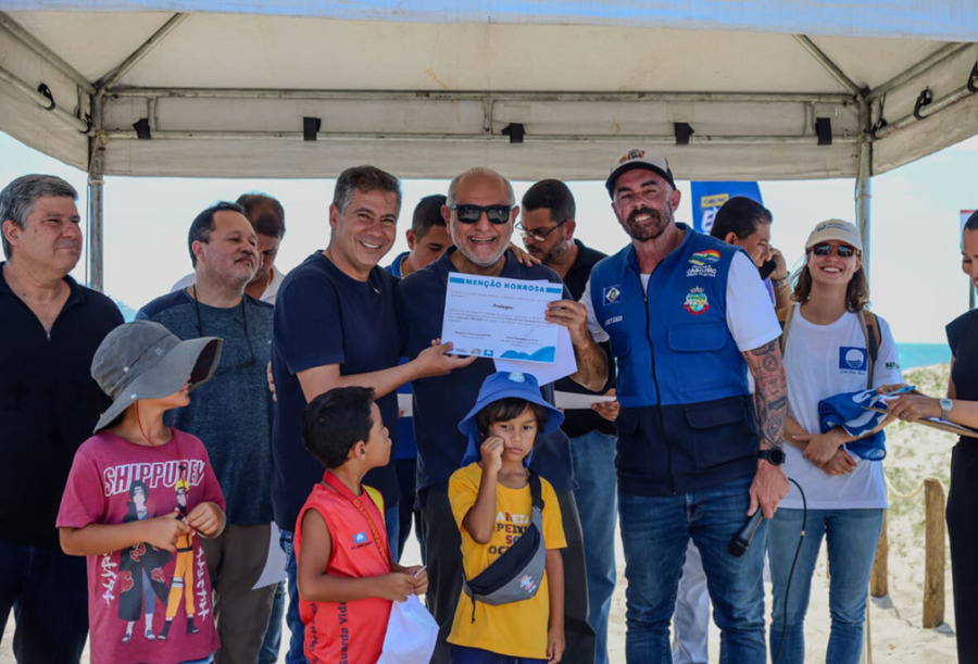 A cerimônia também destacou parceiros que contribuíram para o processo. Lideranças comunitárias, representantes do comércio, educadores e servidores vinculados à Secretaria de Meio Ambiente e à Comsercaf receberam certificados de menção honrosa pelo apoio às ações que permitiram o enquadramento da praia nos requisitos do programa.