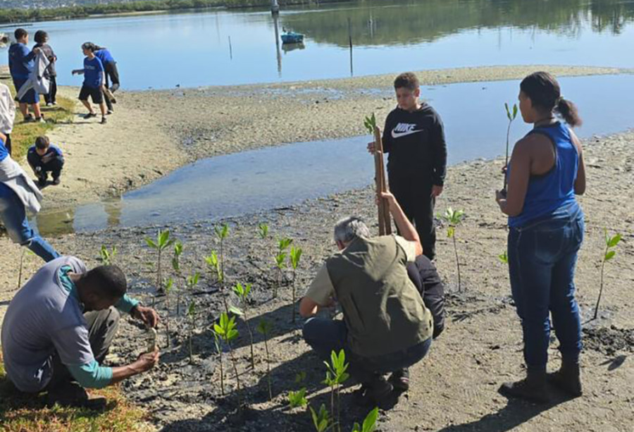 As atividades são executadas pela Equipe Verde da secretaria, responsável pelo plantio, replantio e monitoramento ambiental. Nesta fase, foram reintroduzidas 27 mudas, distribuídas entre espécies como mangue-vermelho, mangue-preto, mangue-branco e mangue-de-botão.