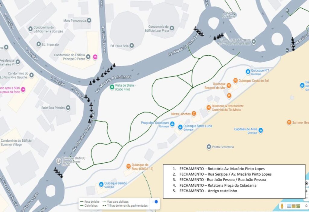 Neste fim de semana, Cabo Frio continuará com interdições no trânsito para garantir a segurança durante a programação carnavalesca. A Guarda Civil Municipal, com o apoio da Secretaria de Mobilidade Urbana, irá manter bloqueios em pontos estratégicos, incluindo a rotatória da Avenida Macário Pinto Lopes, a Rua Sergipe com a Avenida Macário Pinto Lopes, a Rua João Pessoa, a rotatória da Praça da Cidadania e o antigo Castelinho. As interdições seguem até a madrugada de segunda-feira (10).