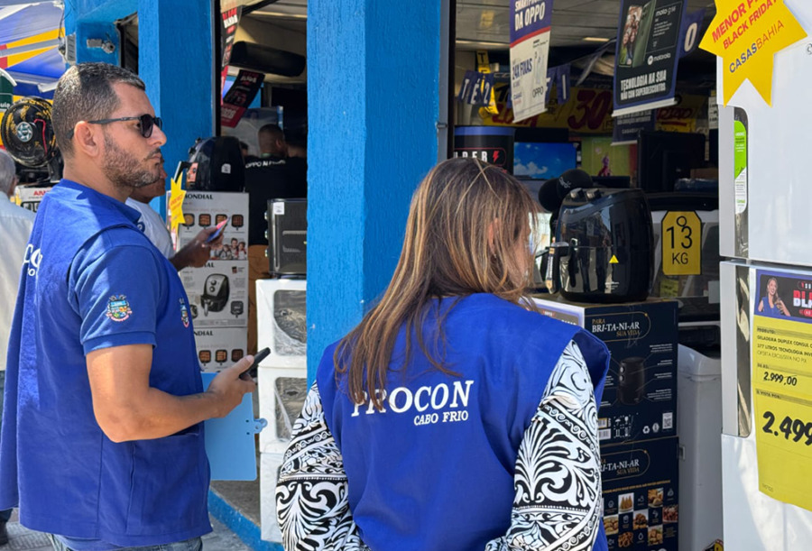 O Procon Cabo Frio realizou uma operação especial nesta quinta (27) e sexta-feira (28) para verificar o comportamento do comércio local durante a Black Friday, tradicional período de ofertas que costuma atrair grande movimento às lojas. As equipes circularam por diferentes pontos do município, começando por Tamoios e, depois, avançando para a área central, com foco em identificar práticas que pudessem prejudicar o consumidor.