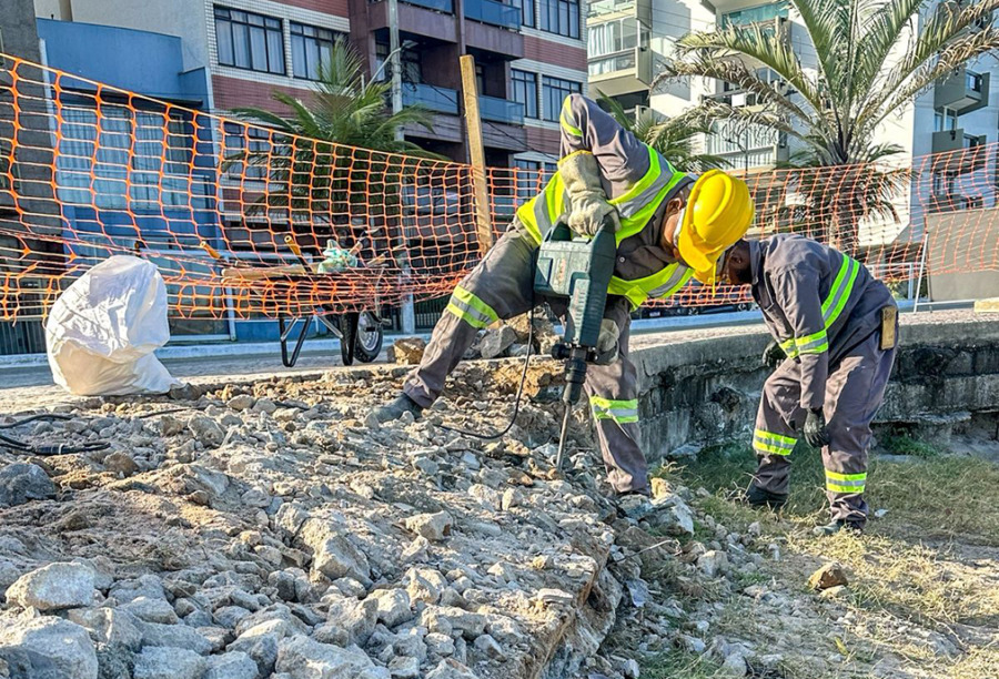 A Prefeitura de Cabo Frio iniciou, nesta terça-feira (12), obras emergenciais para corrigir problemas estruturais no calçadão da Praia do Forte, na altura da Rua Antônio Feliciano de Almeida, ao lado da academia ao ar livre. A intervenção inclui a recuperação do piso, restauração do meio-fio e reinstalação das pedras portuguesas.
