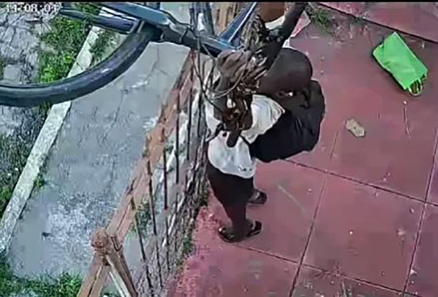 As câmeras de segurança do imóvel registraram toda a ação. O suspeito é visto pulando o muro da casa, pegando a bicicleta — comprada há apenas dois meses — e a passando por cima do portão. Logo depois, ele também salta o muro e foge pedalando.