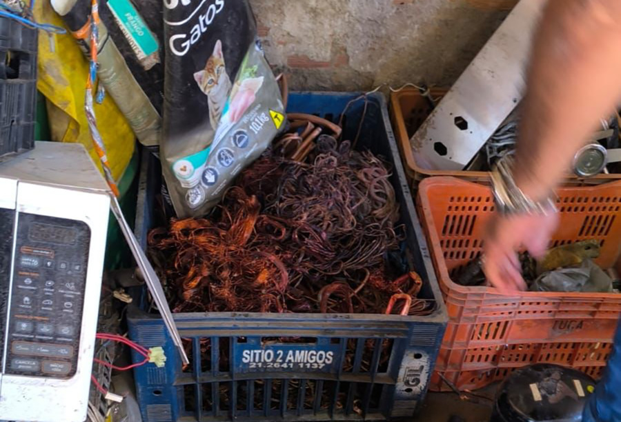 Os agentes encontraram aproximadamente 100 quilos de fios de cobre queimados, possivelmente roubados, em um ferro-velho vizinho ao ponto inicialmente vistoriado. No primeiro endereço averiguado, nada foi identificado de fora da lei.