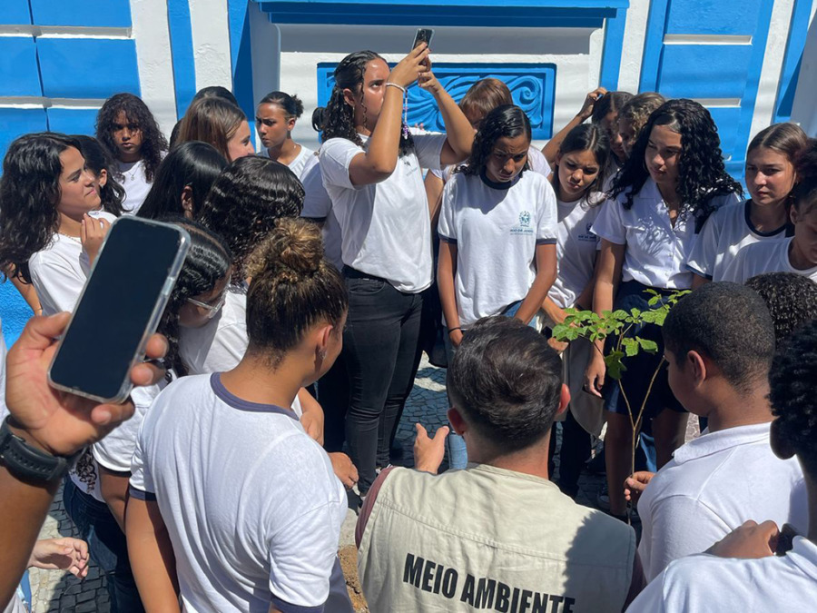 Na manhã desta quinta-feira (03), o Instituto Estadual Professora Ismar Gomes de Azevedo, no Centro de Cabo Frio, foi palco de uma ação especial de educação ambiental promovida pela Secretaria Municipal de Meio Ambiente, Saneamento e Clima. A atividade contou com oficinas práticas sobre técnicas de plantio e manejo de árvores, encerrando com a revitalização da vegetação no pátio da unidade escolar.