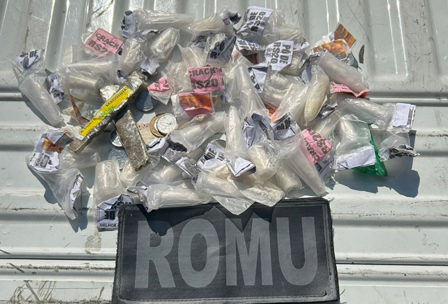 Durante a inspeção no imóvel, os agentes também localizaram drogas: três tabletes de maconha, 15 pedras de crack e 38 pinos de cocaína. Todo o material foi apreendido e encaminhado para a 126ª Delegacia de Polícia.