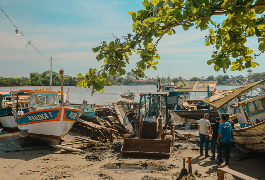 O trabalho é coordenado pelas secretarias de Agricultura e Pesca; Meio Ambiente, Clima e Saneamento; e Segurança e Ordem Pública, com o apoio da Comsercaf e da Guarda Civil Municipal. Durante o mutirão, foram retirados cascos danificados, embarcações abandonadas e materiais em desuso, inclusive uma traineira, que prejudicavam o acesso à praia e serviam como ponto de descarte e foco de doenças. A Comsercaf foi responsável pela remoção e destinação dos resíduos, utilizando maquinário pesado.