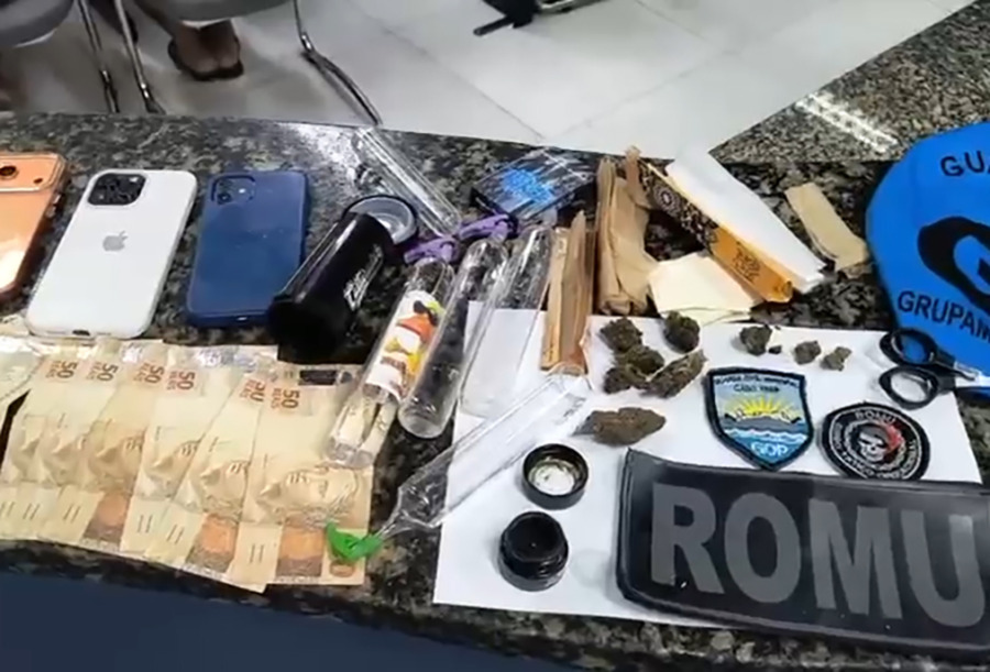 A movimentação policial foi motivada por denúncias relacionadas ao consumo e à suspeita de tráfico de drogas na faixa de areia. Ao chegarem ao local, os agentes realizaram abordagens e localizaram substâncias entorpecentes, incluindo maconha, haxixe, cinco frascos de lança-perfume e a quantia de R$ 900 em dinheiro.