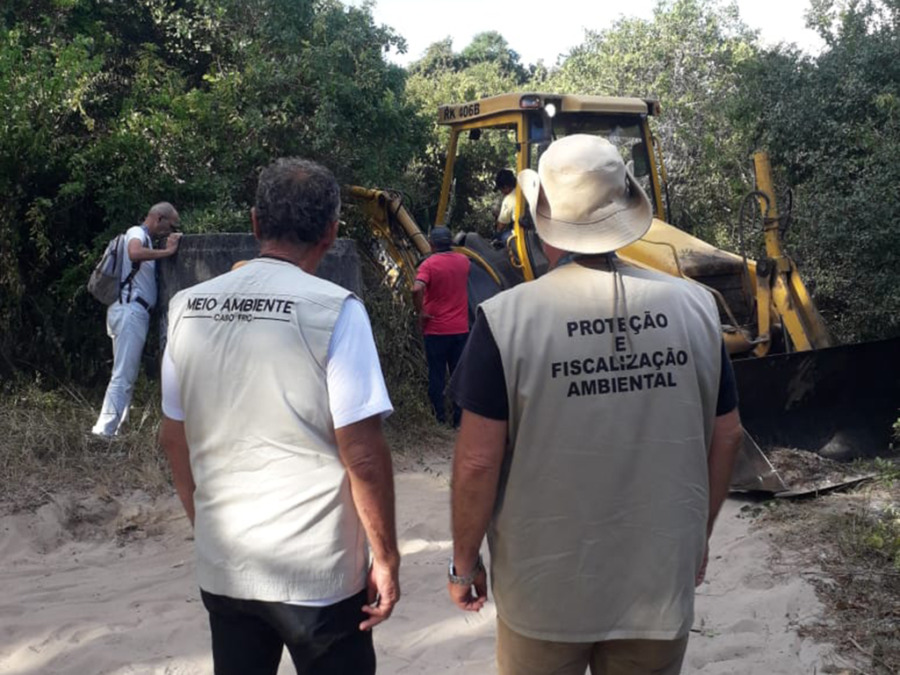 Na última quinta-feira (26), a Prefeitura de Cabo Frio realizou uma ação na Trilha do Anzol, localizada no Peró, para bloquear o tráfego irregular de veículos em Área de Preservação Permanente (APP). A intervenção foi coordenada pela Secretaria de Meio Ambiente, com apoio da Comsercaf e da Secretaria de Segurança e Ordem Pública, através da Guarda Marítima Ambiental.