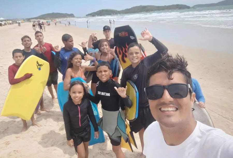 Aboim, de 35 anos, integra a Guarda Civil Municipal há sete anos, atuando no Grupamento da Ronda Escolar. Praticante de bodyboarding desde os 12 anos, ele leva para o cotidiano — dentro e fora da água — valores que aprendeu no esporte, como disciplina, respeito e superação.