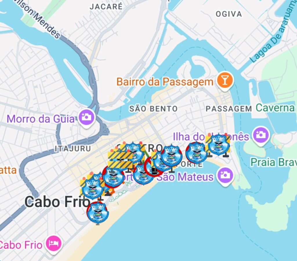 No Centro e na Passagem, estão bloqueadas as ruas Vicente Celestino, Sergipe, João Pessoa, Saturno, Aníbal Amador do Vale, John Kennedy, Travessa Jorge Lóssio e Valtemir Terra Cardoso. Também está interditado o trecho entre a Rua Tamoios e a Avenida Nilo Peçanha, além de toda a extensão da Avenida Macário Pinto Lopes, da Rua Sergipe até a Avenida Hilton Massa. No Peró, o bloqueio se estende por toda a Rua Cação, e em Tamoios, a interdição ocorre na Avenida Beira Mar.