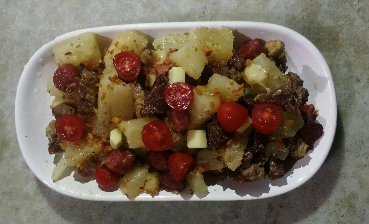 O “Gourmet” desta noite fica por conta do Boteco do Ivair. O prato “Sabor do Pecado”, uma mistura saborosa de carne seca, linguiça suína, aipim, tomate cereja, alho torrado e queijo, que foi gentilmente oferecido por Cacilda e Verônica Amado.