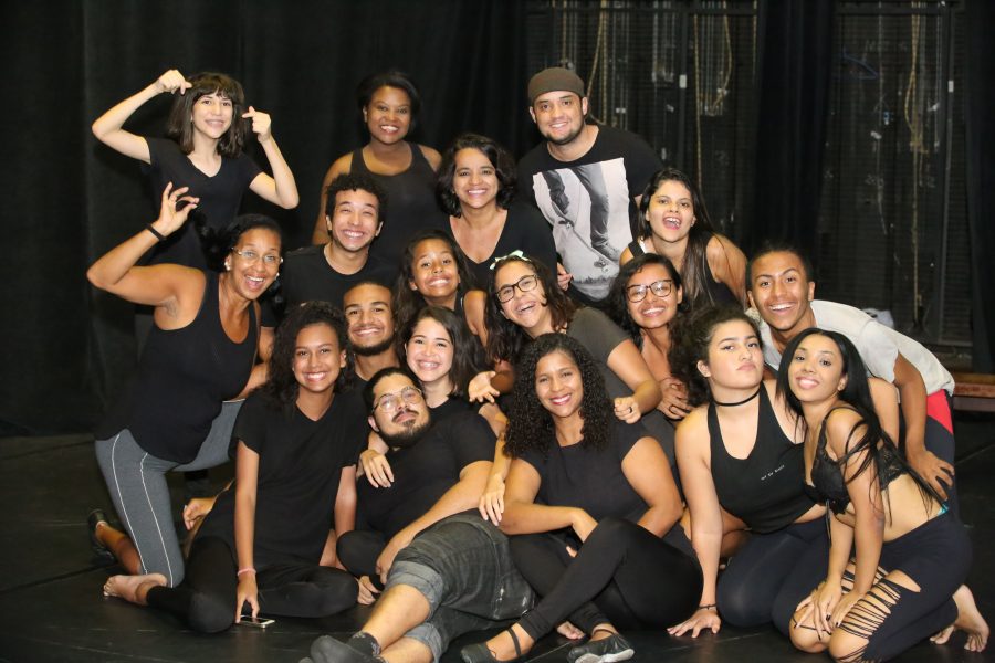 No figurino as cores da bandeira brasileira, deixando o branco para o núcleo das crianças, ampliando o significado da cor (desejo pela paz) para o desejo de esperança. Para o cenário, dois elementos: um banco que passeia pelo espaço cênico dando chances para a formação de planos e figuras estéticas e projeção, que dialoga com as cenas mixadas.