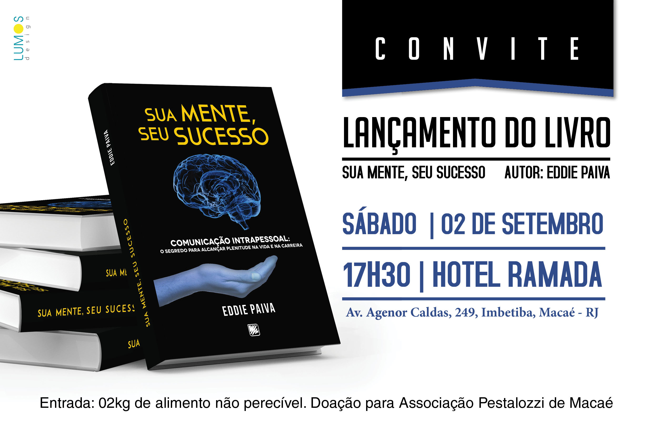 O escritor Eddie Paiva, que também é professor, palestrante, consultor de desenvolvimento humano organizacional, especialista em programação neolinguística e neurociência aplicada à aprendizagem, lança no próximo dia 02 de setembro, o livro “Sua mente, seu sucesso”.