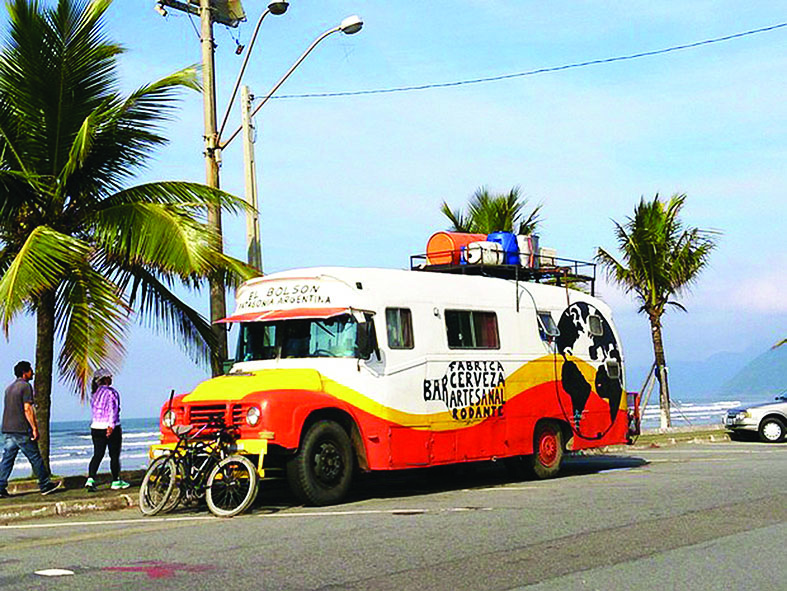 No bar do motorhome, existem as opções de cerveja pilsen, escura com leve sabor de café (malte torrado) e Índia Pale Ale (IPA) com mel e feita de lúpulo da Patagônia.