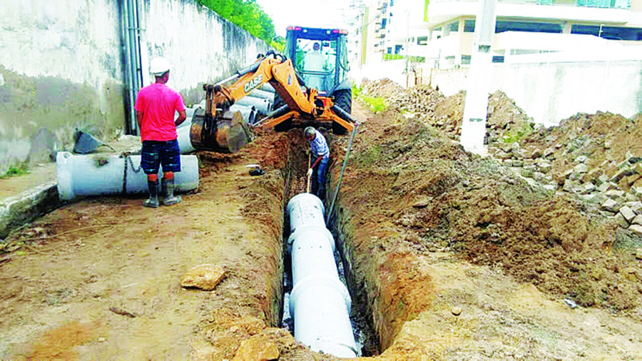 Na Rua Almirante Barroso, no bairro Passagem, foi instalada uma nova rede de drenagem de 400 mm de diâmetro. Também foram construídas caixas de passagem e caixas-ralos, e executada uma nova base para o pavimento com saibro (areia grossa) e brita corrida para recolocação paralelepípedos.