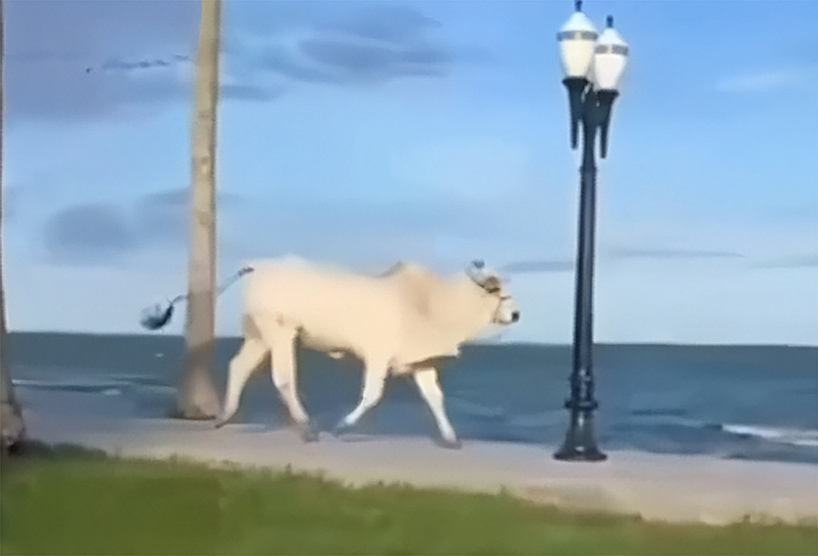 Uma situação inusitada, mas aparentemente não inédita, assustou moradores e turistas que estavam na orla Oscar Niemeyer, em Araruama, nessa quarta-feira, 23, quando um boi desorientado atravessou uma área de lazer na localidade.