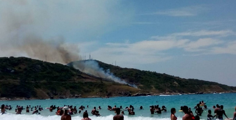 Novamente a mata próxima à Prainha, em Arraial do Cabo foi parcialmente destruída pelo um incêndio. As chamas foram de grandes proporções e os bombeiros usaram água do mar para debelar o sinistro. O incêndio aconteceu na tarde de domingo (20) e só foi debelado com o uso de um helicóptero dos bombeiros que fazia o transporte da água do mar até o morro.