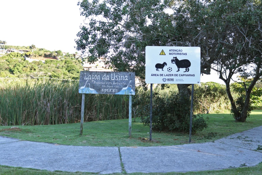 O município de Búzios continua usando a idéia de instalar placas bem humoradas em locais, que são frequentadas por animais silvestres. O objetivo é chamar atenção de quem passa para que tenha cuidado com esses ilustres moradores. Nesta semana, uma placa de alerta a presença de Capivaras foi instalada na Lagoa da Usina, no Centro da cidade.