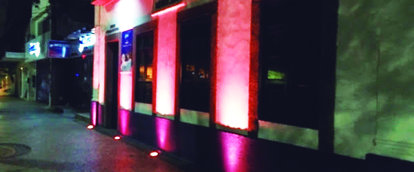 O prédio está iluminado de rosa, simbolizando a campanha de prevenção ao Câncer de Mama