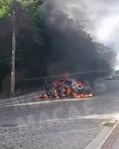 Um carro pegou fogo na manhã desta segunda-feira em Macaé no bairro Granja dos Cavaleiros. Segundo informações, o incidente aconteceu por volta das 7h, em frente à Escola Adventista.