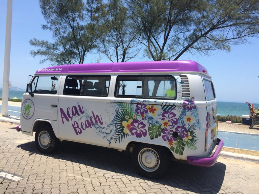 Uma Kombi adesivada Açai Beach e que fica localizada num dos cartões postais de Macaé, a Praia do Pecado. Um produto que é muito consumido principalmente no verão e o melhor, à beira mar. Foi assim que a estudante de psicologia e empresária Genid Isabelle Miranda, de 24 anos, e a jornalista Naiara Correa Matias, de 23, se tornaram empreendedoras, como meio também de driblar a crise financeira.