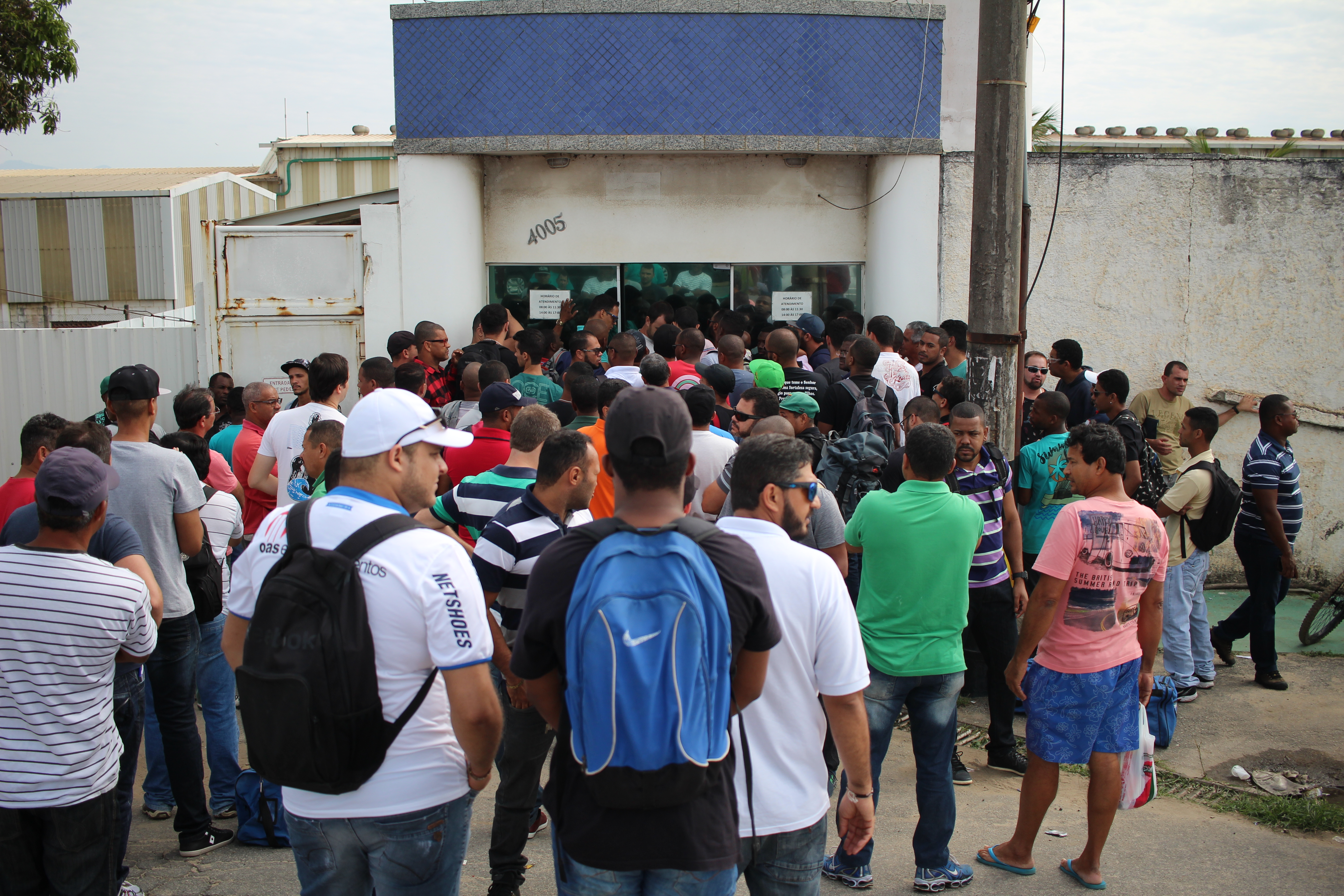 Nessa terça-feira (18), parte dos trabalhadores demitidos se aglomerou em frente à base da UTC Engenharia, em Macaé. Muitos, segundo relatos, não haviam sido comunicados de demissões.