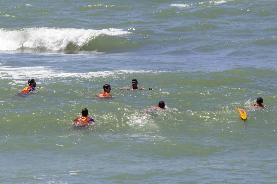 A equipe que vai conduzir as pessoas com deficiência ao banho de mar é constituída por seis pessoas. Foram feitos testes de corrida curta e longa na areia; retirada de acidentados no mar e na areia; percurso no mar, transporte de acidentados na areia, flutuabilidade, entre outros treinamento s para garantir bom andamento e qualificação na atividade.