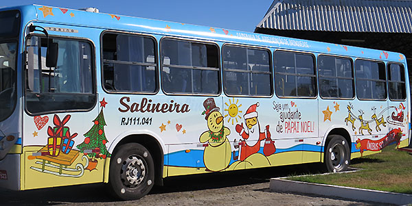 A ação contará com um ônibus envelopado e iluminado, que circulará até o final de dezembro, fazendo revezamento entre as linhas da Auto Viação Salineira, Viação Montes Brancos e Viação São Pedro.