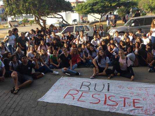 Um grupo de estudantes do Colégio Rui Barbosa, em Cabo Frio, foram as ruas na manhã desta quarta-feira, 03, em protesto pela falta de uma quadra poliesportiva na unidade.