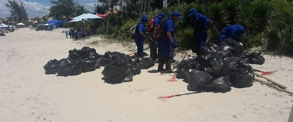 Nas praias do Peró, Conchas e Ilha do Japonês, 40 funcionários, duas retroescavadeiras, sete caminhões, três tratores e dois compactadores foram utilizados para efetuar a coleta de quase 70 toneladas de resíduos.