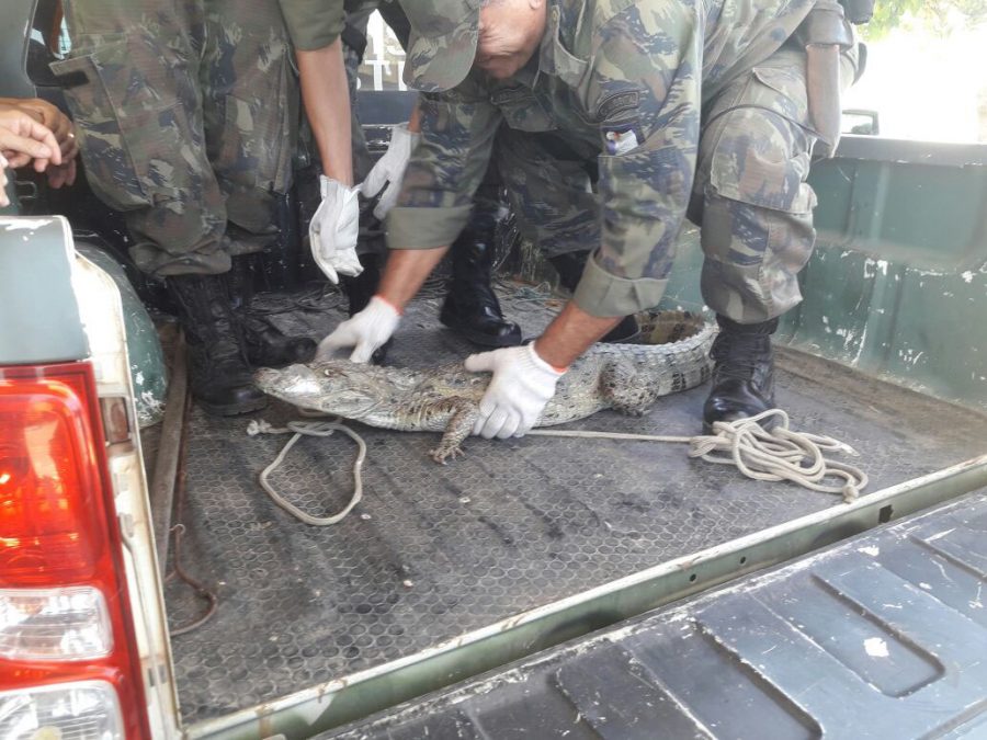 Um jacaré-do-papo-amarelo foi capturado na manhã dessa segunda-feira (18) por homens da Guarda Ambiental de Macaé. O réptil foi encontrado no pátio da empresa Schlumberger, na Granja dos Cavaleiros.
