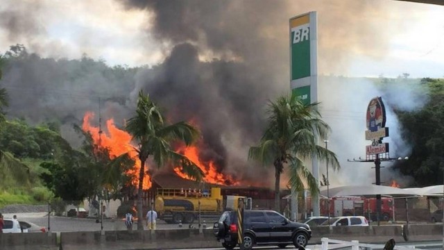 Kiosque do Alemão incendeia e deixa feridos na manhã desta sexta-feira (5), na BR-101, em Itaboraí