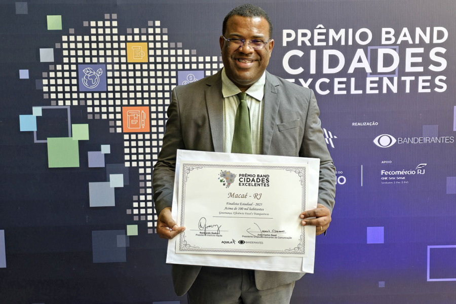 Macaé foi um dos destaques do Prêmio Band Cidades Excelentes 2025. O município foi um dos finalistas do prêmio, que foi realizado na última terça-feira (7) no Rio de Janeiro. As indicações vieram nas categorias Governança, Eficiência Fiscal e Transparência, acima de 100 mil habitantes. A iniciativa foi promovida pelo Grupo Bandeirantes em parceria com o Instituto Aquila.