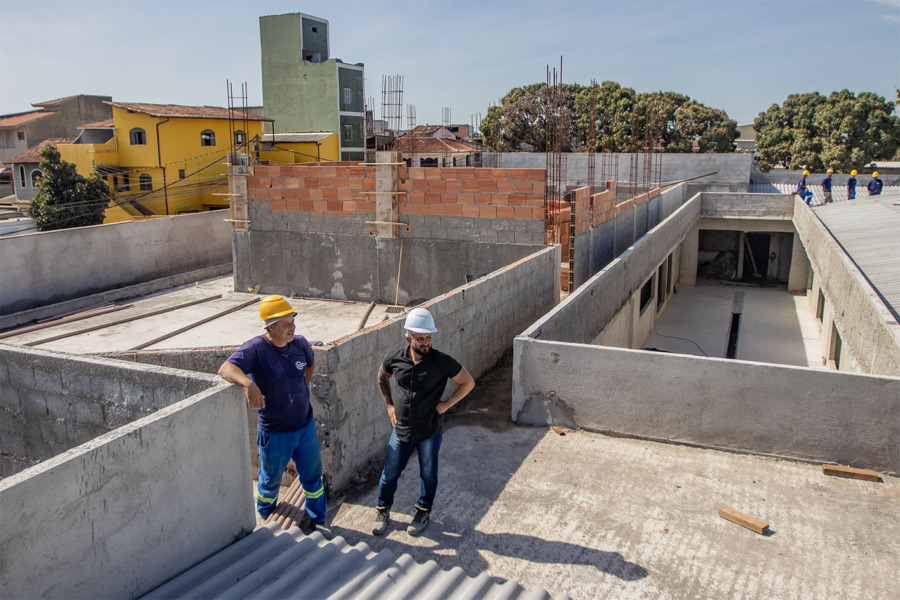 "Atualmente estão em andamento os serviços de acabamento das platibandas, montagem do telhado, instalações hidráulicas, instalações elétricas e instalações de drenagem", detalhou o Secretário Executivo de Obras, Felipe Bastos.
