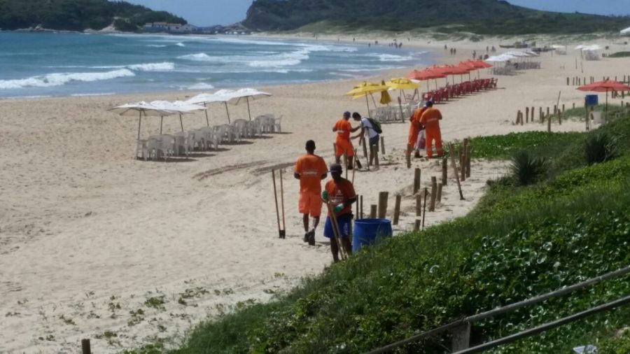 Nesta semana, começou a ser realizado o cercamento e o plantio de ipomeias (planta nativa dos areais) na faixa de areia da Praia do Peró, em Cabo Frio. A ação visa proteger a praia que é uma das candidatas ao Programa internacional de qualidade do turismo, Bandeira Azul.