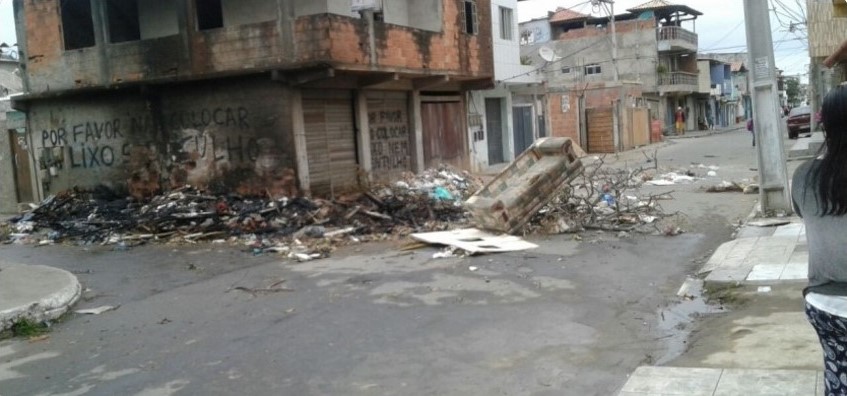 Revoltados com os problemas no recolhimento de lixo no bairro, um grupo fechou a via com lixo e sofás velhos para impedir a passagem dos carros. O tráfego no local ficou interrompido durante a manhã.