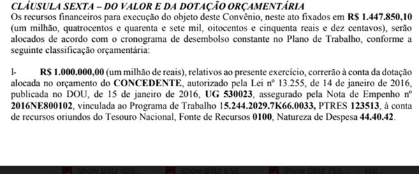 Sobre a paralisação da obra - Orçada inicialmente em um milhão de reais pagos pela União, a obra de pavimentação e drenagem da Estrada Morro das Emerências foi ampliada através de documento técnico do município, que atestava a necessidade de pavimentação não somente desta estrada, mas de todo o caminho das águas, incluindo as ruas Cantinho do Céu, José Gonçalves e da Paz, para solução dos problemas de drenagem existentes no local. Com isso, o município assumiu uma contrapartida no valor de R$ 447.850,10 (quatrocentos e quarenta e sete mil, oitocentos e cinquenta reais e dez centavos), e o valor total da obra ficou em R$ 1.447.850,10 (um milhão, quatrocentos e quarenta e sete mil, oitocentos e cinquenta reais e dez centavos).