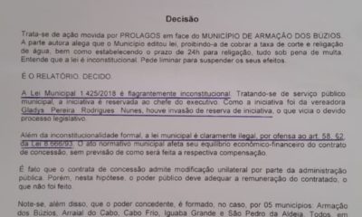 Justiça mantém direito da Prolagos cobrar taxa de corte e religamento em Búzios