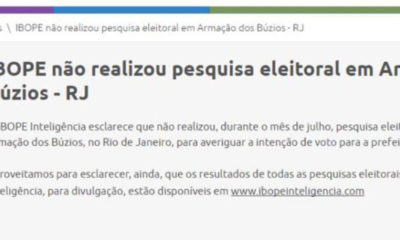 Nas últimas semanas, na cidade de Armação dos Búzios, foi veiculada uma pesquisa apontando a intenção de votos para chefe do executivo municipal. A pesquisa mostra...
