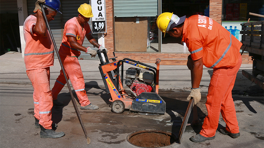 Equipe da prefeitura trabalha na recuperação de poço de visita na Rua Abel Siqueira, no Recanto, além de realizar diversas ações de manutenção, urbanização e infraestrutura no município