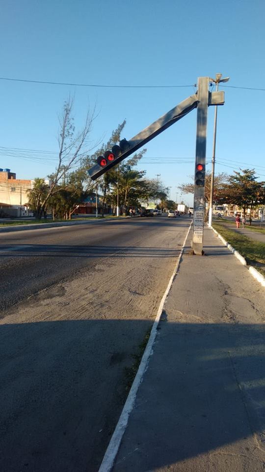Na manhã desta terça-feira, 24, a parte de cima do semáforo, localizado em frente ao posto de saúde de Unamar, no Distrito de Tamoios, em Cabo Frio, caiu, alarmando à população. O trânsito precisou ser desviado na localidade.