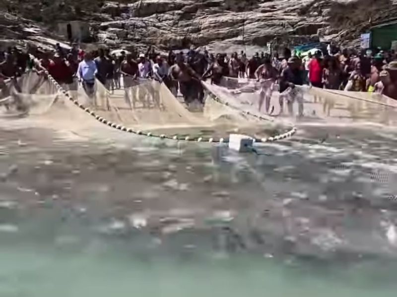 Divulgada nas redes sociais, as imagens mostram ainda um momento em que eles identificam uma tartaruga-marinha que ficou presa acidentalmente nas redes, resgatam o animal e o devolvem ao mar, arrancando aplausos das pessoas ao redor.